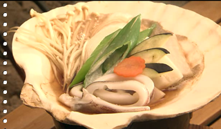 ・ホタテの貝殻を器として利用した「いしりの貝焼き」が昔から能登に伝わる素朴な召し上がり方だそうです。