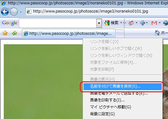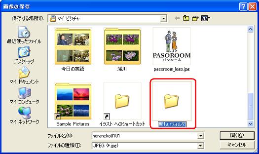 | ステップテキストでおなじみのパソコープでは、「パソコープの広場」という教室に通うみんなのためのホームページがあります。 パソコープの広場では、自由に使えるフリー素材の写真を掲載しています。 ポストカードを作ったり、カレンダーを作ったり、何かいい写真はないかなあ、とお探しの時、ちょっと覗いてみてください。 すでにご存じの方も多いかもしれませんが、今回はホームページに掲載している画像のダウンロード方法をご紹介しましょう。 1.まず、パソコープの広場にアクセスしてください。 2.左メニューの【PASO写真素材館】をクリックします。 3.いいなと思う写真の上をクリックしてください。 4.さらに写真の上をクリックすると、大きなサイズの写真が表示されます。 5.大きな写真の上で右クリックします。 6.表示されたショートカットメニューの【名前を付けて画像を保存】をクリックします。 7.画像を保存します。 【ピクチャ】(Vista)、【マイピクチャ】(XP)に保存しますが、このタイミングで新しいフォルダを作成してみましょう。 【新しいフォルダ】をクリックします。 <Vista> <XP> 8.新しいフォルダに名前を付けます。文字が青く反転している状態で、このまま入力します。 (ここでは「猫の写真」という名前を付けています。) <Vista> |