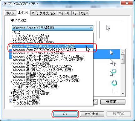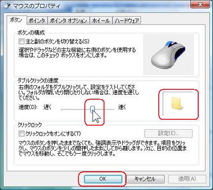 | ダブルクリックやドラッグなど、パソコンの操作にマウスは欠かせません。 最初は思うように操れないマウスですが、慣れてくれば特にどうということもなくなります。 でも、もうちょっと自分に合った使い方ができたら、もっと楽に操れるかもしれませんね。 わかりやすいものを2つご紹介しましょう。 ◎マウスポインターを大きくしよう! 1.【スタート】をクリックし、【コントロールパネル】をクリックします。 2.XPの方も、ビスタの方も、左の【クラシック表示】をクリックします。 3.たくさん並んだアイコンの中から【マウス】をダブルクリックします。 4.【マウスのプロパティ】が開きます。 5.【ポインタ】タブをクリックし、【Windowsスタンダード(大きいフォント)】をクリックします。 *その下にある【特大のフォント】でもいいですよ。 <XP> <ビスタ> 6.【OK】をクリックします。 マウスポインターが大きくなりました。 どうでしょう?見やすくなったと思いませんか? ◎ダブルクリックのタイミングをゆっくりにしよう! 1.上記と同じようにコントロールパネルから【マウス】をダブルクリックして、【マウスのプロパティ】を開きます。 2.【ボタン】タブの、【ダブルクリックの速度】のところをご覧ください。 3.右にあるフォルダの絵をダブルクリックしてみましょう。ゆっくりめの方がいい方は、つまみを【遅く】のほうにドラッグします。 <XP> <ビスタ> 4.【OK】をクリックします。 ※マウスのプロパティの内容は、パソコンがノートパソコンの場合や、マウスの種類、メーカーの違いなどによって異なります。 右利き、左利きなどの設定変更もマウスのプロパティから行います。 また、スクロールボタンのホールの移動量の調整などもここで設定することができます。 わからないことがありましたら、どうぞおたずねください。 いつでも、何回でもやさしく笑顔でお答えしま〜す★⌒(@^-゜@)v ♪ |