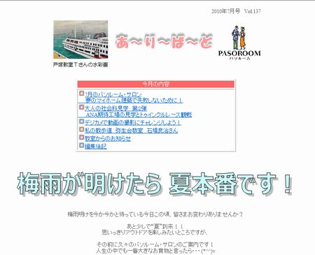 | こんにちは。 7月に入り、本格的夏の到来となりました。お変わりありませんか? 「あ〜り〜ば〜ど Vol.137 7月号」が発行されました。 ↓ ↓ http://www.pasoroom.jp/ari/137/137.htm ・7月のパソルーム・サロン 夢のマイホーム建築で失敗しないために! ・大人の社会科見学 第2弾 ANA期待工場の見学とトゥインクルレース観戦 ・デジカメで動画の撮影にチャレンジしよう! ・私の散歩道 弥生台教室 石場良治さん ・教室からのお知らせ ・編集後記 私の散歩道は今回が50回目。 これまでに50人もの生徒さんにご登場いただきました。 50人の50のストーリーはどれも素晴らしく、元気や勇気をたくさんいただきました。 ありがとうございます。 私の散歩道は、ホームページ上で過去の記事を読むことが出来ます。 読み逃した記事がある方は、ぜひこちらをどうぞ。(*^_^*) ↓ ↓ http://www.pasoroom.jp/sanpo/ | |