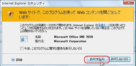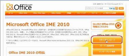 Office2007$B!J%o!<%I$d%(%/%;%k$,(B2007$B!K$r;H$C$F$$$k>l9g$O(BIME2007$B!"(BOffice2003$B!J%o!<%I$d%(%/%;%k$,(B2003$B!K$r;H$C$F$$$k>l9g$O(BIME2003$B$,!"<+F0E*$KAH$_9~$^$l$F$$$^$9!#(B $B%^%$%/%m%=%U%H$G$O!":#2s$N(BOffice2010$B$NH/Gd$HF1;~$K!"(BIME2010$B$rL5NA$GDs6!$7$F$$$^$9!#(B Office2010$B$r9XF~$7$??M$@$1$G$J$/!"(BOffice2003$B!"(BOffice2007$B$rMxMQ$7$F$$$k?M$G$b!"L5NA$G%@%&%s%m!<%I$7$F;H$&$3$H$,=PMh$k$h$&$K$J$j$^$7$?!#(B $B$3$N(BIME2010$B!"JQ49$N%9%T!<%I$d@:EY$,8~>e$7$F$$$k$H$N$3$H$G$9$+$i!"AaB.;H$C$F$_$^$7$g$&!#$H$/$K!"(BOffice2007$B$rMxMQ$7$F$$$kJ}$K$O%*%9%9%a$G$9!#(B IME2007$B$O!"<-=q$,2u$l$k$J$I$N%H%i%V%k$,$"$C$F!"F|K\8lJQ49$,$H$F$b%X%s$G$7$?$+$i$M!*(B $B%$%s%9%H!<%k $B#1!%0J2<$N(BURL$B$K%"%/%;%9$7$^$9!#(B $B!!!!(Bhttp://www.microsoft.com/japan/office/2010/ime/default.mspx $B#2!%!Z:#$9$0%@%&%s%m!<%I![$r%/%j%C%/$7$^$9!#(B $B#3!%!Z%@%&%s%m!<%I![$r%/%j%C%/$7$^$9!#(B $B#4!%!Z $B#5!%%@%&%s%m!<%I$,3+;O$7$^$9!#(B $B#6!%!V%f!<%6!<%"%+%&%s%H@)8f!W$N2hLL$,=P$?$i!ZB39T![$r%/%j%C%/$7$^$9!#(B $B#7!%!VF10U$9$k!W$K%A%'%C%/$rF~$l$F!"!Z $B#8!%!Z$O$$![$r%/%j%C%/$7$^$9!#(B $B#9!%!V%$%s%9%H!<%k$,40N;$7$^$7$?!W$N2hLL$,=P$?$i!"!Z(BOK$B![$r%/%j%C%/$7$^$9!#(B $B#1#0!%%;%-%e%j%F%#$N2hLL$,=P$?$i!"!Z5v2D$9$k![$r%/%j%C%/$7$^$9!#(B $B#1#1!%$3$l$G40N;$G$9!#(B $BF|K\8l%D!<%k%P!<$K%^%&%9%]%$%s%?$r9g$o$;!"%$%s%9%H!<%k$,$G$-$?$3$H$r3NG'$7$^$7$g$&!#(B $B $B$$$D$G$b!"2?2s$G$b$d$5$7$/>P4i$G$*Ez$($7$^!A$9!z"^(B($B!w!0(B-$B!,!w(B)v $B"v(B $B!z(B$B=)$N%P%9!&%T%/%K%C%/!!!V(BANA$B5!BN9)>l8+3X$H%H%%%$%s%/%k%l!<%9!W(B |