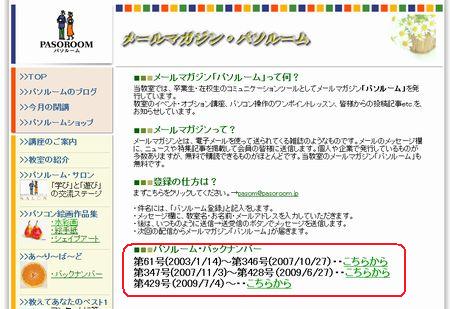 | ◎メールマガジン「パソルーム」のバックナンバーは、こちらでご覧いただけます。 http://www.pasoroom.jp/mailmagagin.html |
