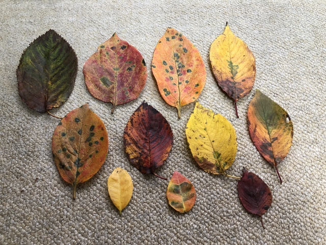 (近くの公園で枯葉をゲットしてきました)