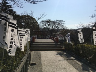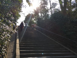 鶴岡八幡宮には駐車場先の脇道へ入り、階段を上ります。