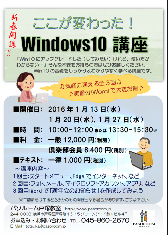 「ここが変わった!Windows10」講座(全3回)のお知らせです♪♪
