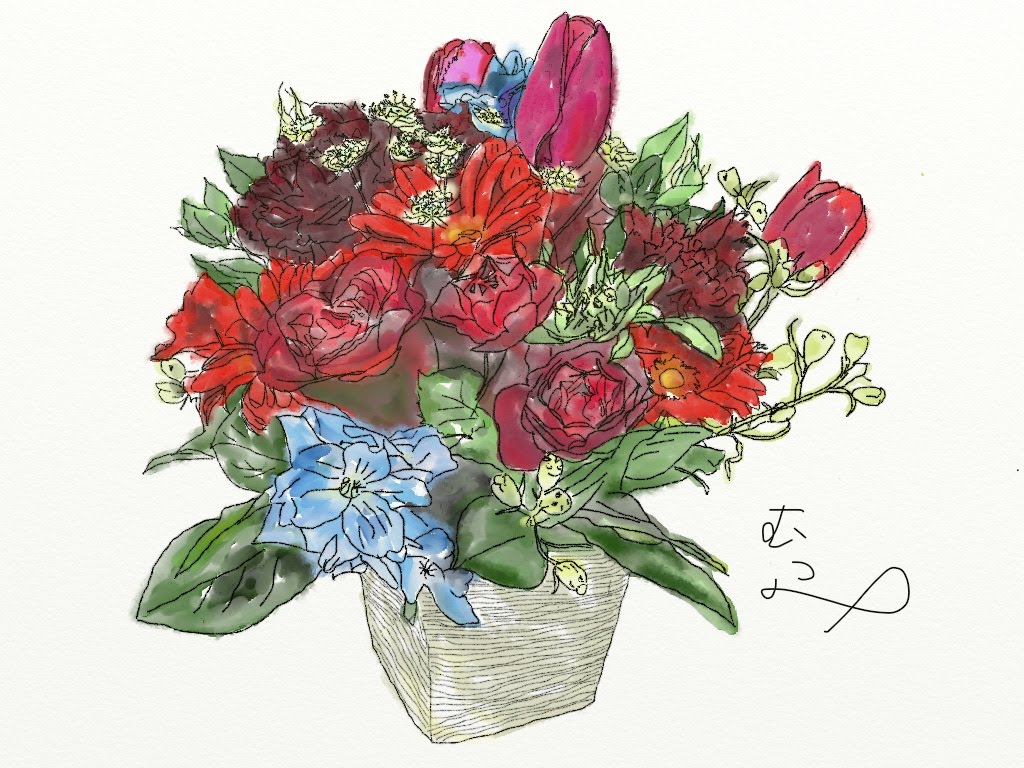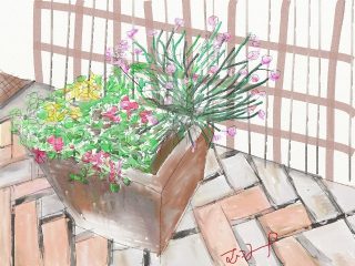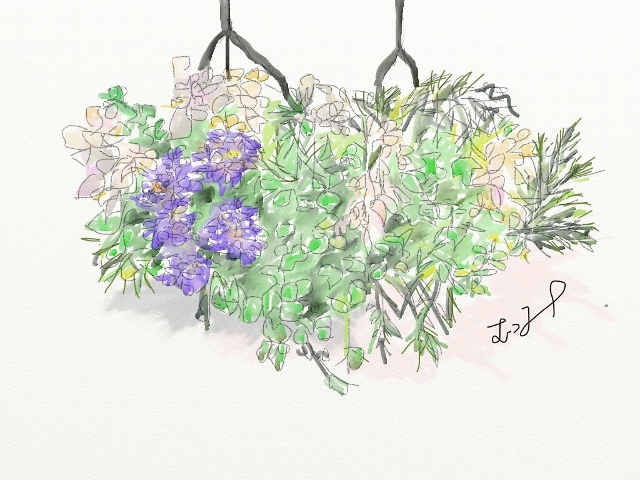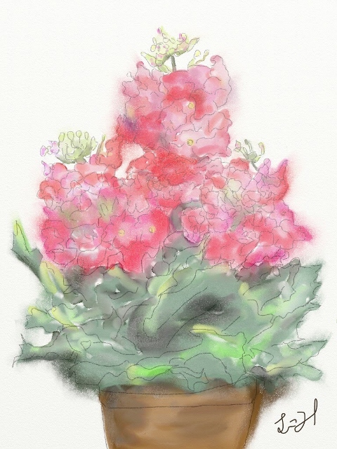 花籠の輪郭をArtRageのお道具の鉛筆でなぞって描きます。