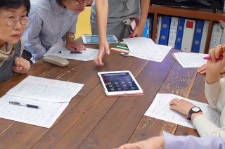 手元のタブレットの画面を一緒に確認したり