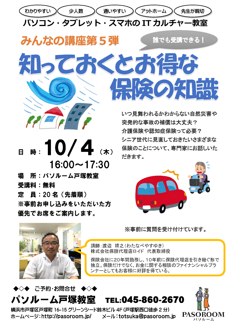 10月4日(木)午後4時からパソルーム戸塚教室にて