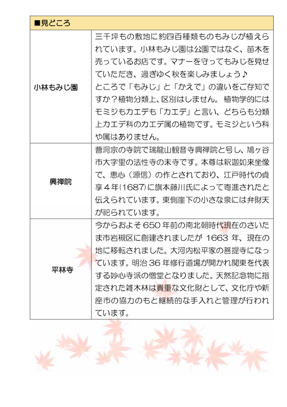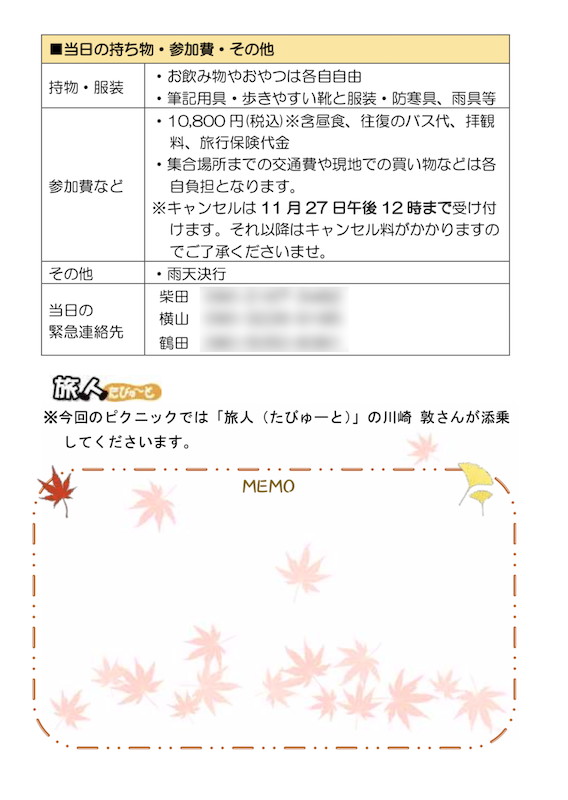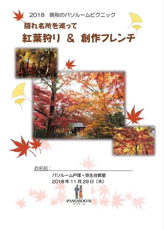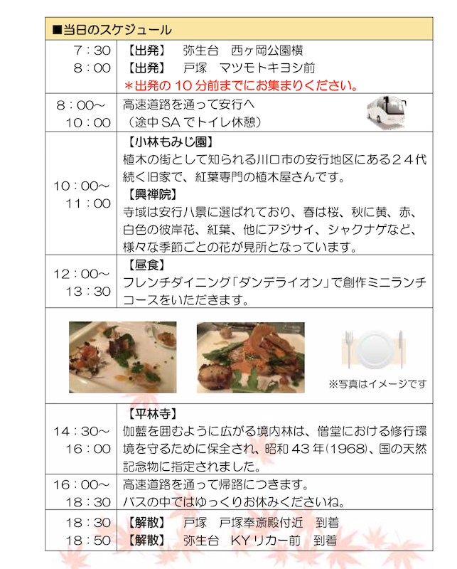 「隠れ名所を巡って 紅葉狩り&創作フレンチ」に、沢山のお申し込みをありがとうございました。
