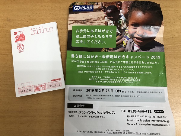 プランインターナショナルが実施している「書き損じや未使用のはがきを集めて途上国の子供たちを応援するキャンペーン」に参加しました。