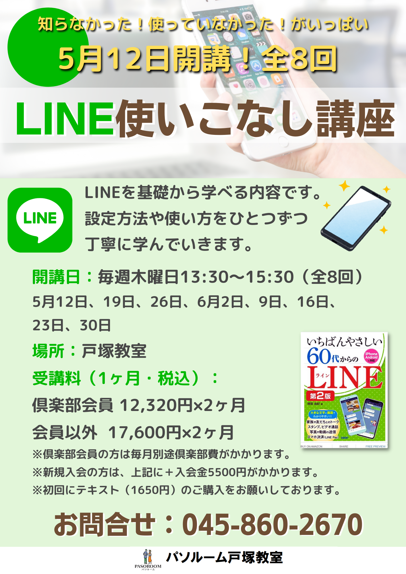 5月12日開講、「LINE使いこなし講座」のご案内です。