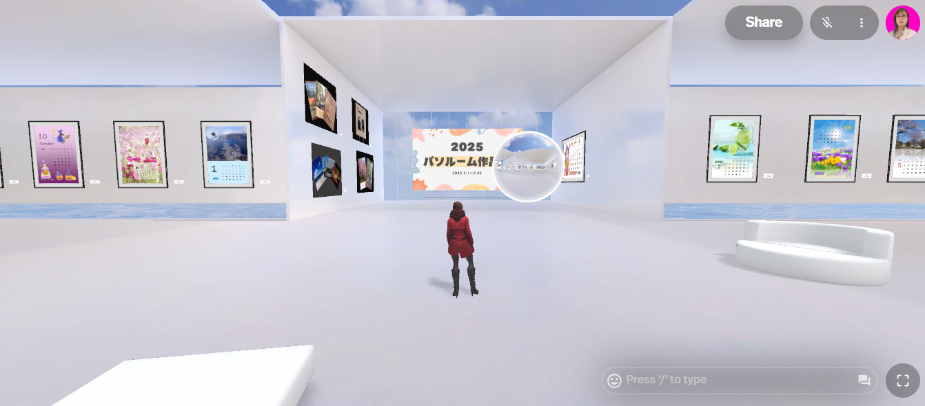 会場内では、自分の分身のアバターを動かして作品を見ましょう。