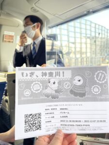 旅人(たびゅーと)川崎さんから「地域クーポン券」の使い方レクチャーを受け