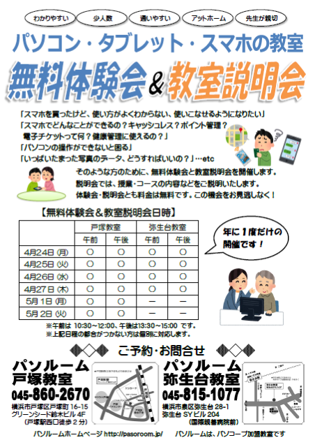 <戸塚教室>045-860-2670 totsuka@pasoroom.jp