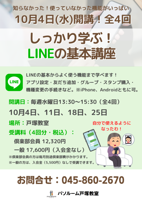 パソルームでは、そのような方のために、次のような講座を開催しています。