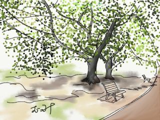 【iPadを持ってお外に飛び出しスケッチしてみませんか!!ベンチでスケッチしてカフェで色付けを楽しみましょう。スケッチといってもまずは構図を決めてiPadで写真を撮ります。その写真をお道具の鉛筆でなぞっていきます。それをトレースと言いこれで下絵を作ります。なので絵心のない方でも安心して描けるわけです。】