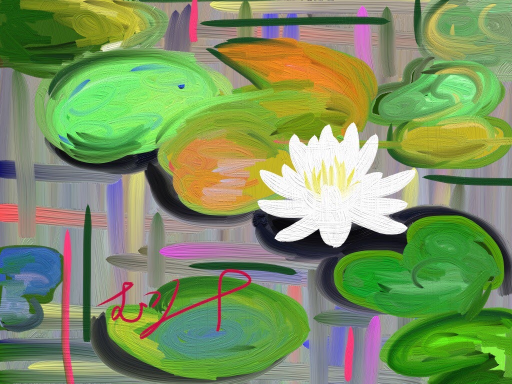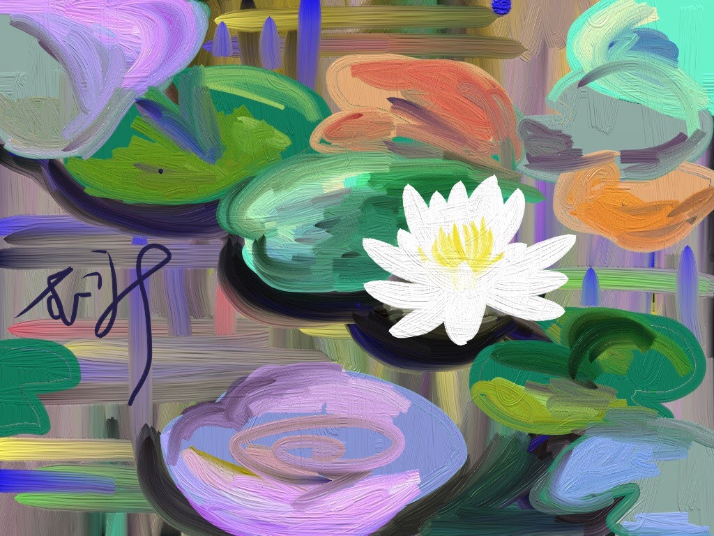 タイトル通り油筆で下絵はなく直接自由に色付けし個性豊かなにモネ風・睡蓮を描きます。