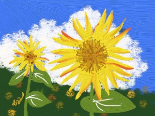 *テーマ:「青空にそびえるひまわりを描く」