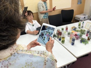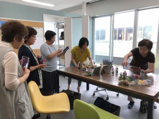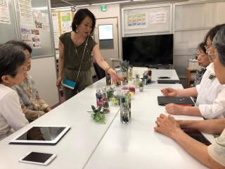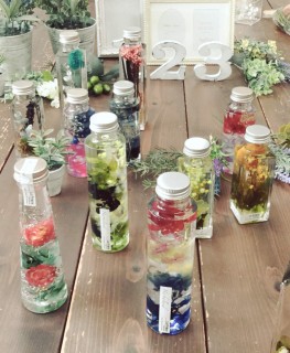テーブルの上に並べた、色鮮やかなハーバリウムや花材に、皆様釘付けのご様子。