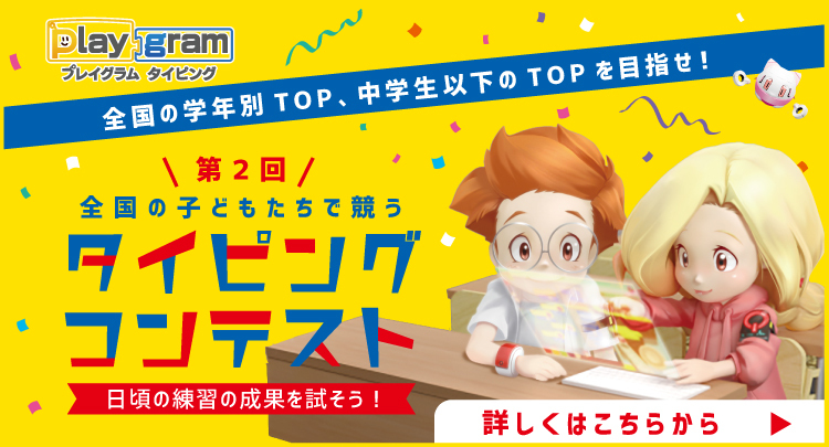 HOME > お知らせ > 第2回タイピングコンテスト開催中 第2回タイピングコンテスト開催中 プログラミング教育 HALLO から、タイピングコンテストのご案内です。 プログラミング教室受講生でなくても参加できます。 対象年齢は、年長・小学生・中学生。 自分のタイピングスキルを確かめるチャンス!ぜひご参加ください。 ■□■□■□豪華な景品も要チェックです■□■□■□ お問合せ・お申し込みはこちらから プログラミング教室担当 坪井有紀