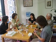 サロンスペースでも和やかに。「コーヒー?紅茶?それとも日本茶?」 色々、取りそろえてありますよ~。 |