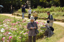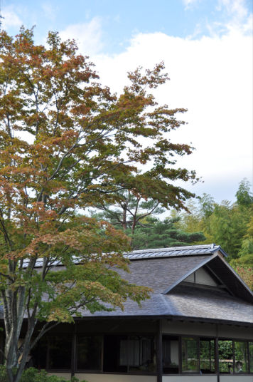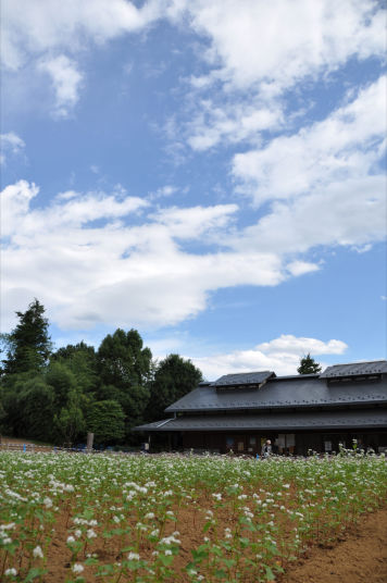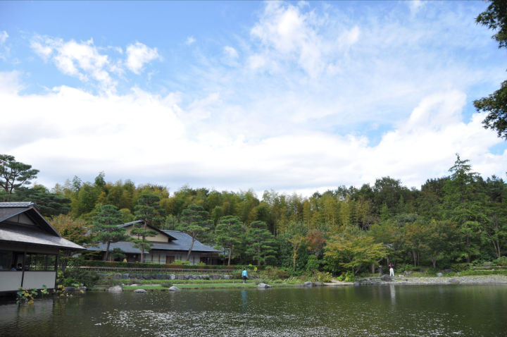 コスモスに飽きた皆さんは、日本庭園へ足をのばしました。青い空に映える白い雲の形が面白いですね。