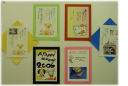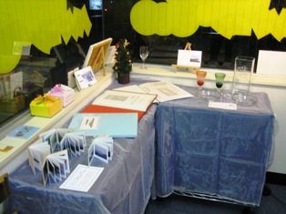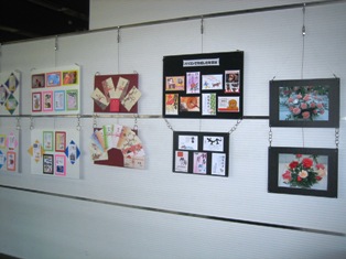 | 戸塚教室では立体的な作品を飾っていました。カレンダーやタイルアート、ドリームブックやガラス製品もありましたよ。 |