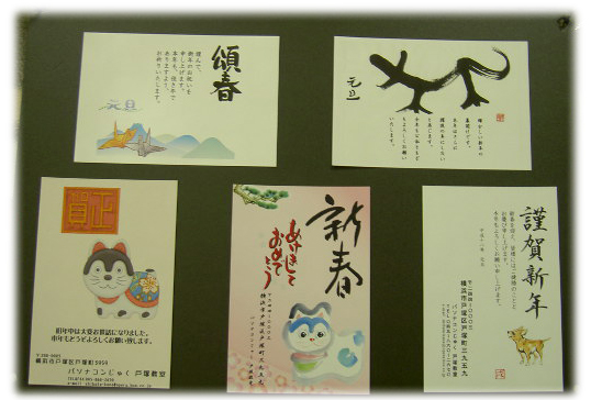パソコンで作った年賀状やポストカード。イラストを組み合わせたり、ご自分の書をスキャナで取り込んでデザインした方も・・・。