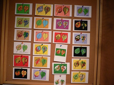 水彩体験コーナー 「木の葉をあなた色に染めてください」