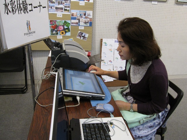 プロジェクターのスクリーン右側は 『水彩体験コーナー』 となっています。