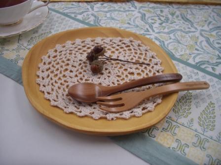 お皿も、スプーンも、フォークも木のぬくもりがあります |