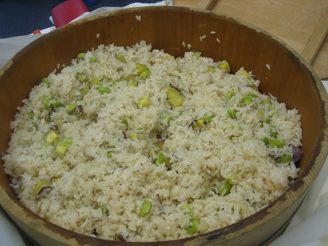先生手作りの「さつまいもと枝豆のおこわ」「かんたん大学芋」をいただきながらレシピを教えていただきました。