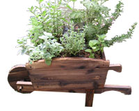 参考作品 手押し車のプランターに植えたハーブたち。 |