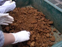 | ベースを作る。 赤土を大まかに砕きます。 |