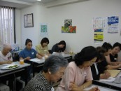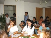 | 弥生台教室の参加者17名、サロンスペース(戸塚)の参加者18名、計35名の参加がありました。ナント参加者は全員女性でした。参加者にはあらかじめ伺っていた生年月日から分析をした、その方のキャラクターとグループを絵にしたシールを胸に貼っていただきました。「あら、わたしは黒ひょう?」「チーターってどんな性格?」などの会話が聞こえる中、ゲストの河村氏のお話しが、パワーポイントを使ったプレゼンテーション形式で始まりました。興味津々の話題に夢中になり、ときどき笑い声も聞こえながら楽しいひと時を過ごしました。 弥生台教室でのおやつは、チーズオムレットと差し入れのキュウリにお味噌をつけていただきました。 サロンスペースでは初めての夜の催しです。軽食に、釜玉うどんとうなぎの笹蒸し、差し入れのキュウリにお味噌をつけていただきました。とっても美味しくしあわせ〜でしたね!暑い日でしたから、冷えたビールもGood! |