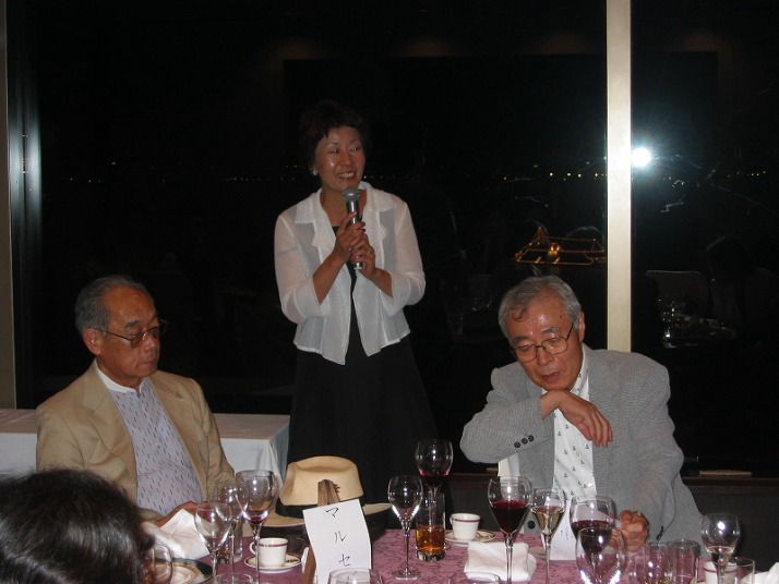 | 今回の参加者は71名。 会場は横浜港が一望できる「ザ ヨコハマ ノボテル」の13階で、最高のロケーションでした! まずは吉間諒子さん(弥生台教室)の乾杯の音頭でフルコースディナーが始まりました。どれもこれも素材の味が生かされ、盛り付けもとってもおしゃれで食べるのがもったいないくらいでした。 ディナーもそろそろ終わる頃に柴田先生に「パリ祭」についてお話をしていただきまいた。その後は、ディナーショーの始まりです。ピアノ(ケミー・西丘 氏)とギター(松本 晴夫 氏)の演奏で始まり、いよいよゲストの「鈴木さなえさん」の登場です!背中の大きく開いたステキなドレスに身を包み、華麗な歌声を披露してくださいました。 シャンソンは一編の短いドラマのようで、歌い手が一曲一曲を演じていると言った感じ。それぞれの曲に喜怒哀楽が表現され、知らず知らずのうちに歌の世界に引き込まれていました。。楽しくなったり、切なくなったり・・・自分の人生と重ねて胸が熱くなった方もいらしたのではないでしょうか〜。 約1時間で10曲を熱唱していただきました。名残惜しさはみな同じで、どこからともなくアンコールの拍手が!!それにこたえて「ろくでなし」を披露してくださいました。休憩も入れずに通して歌ってくださったので、お疲れだったことと思います。その分、私たちは思い切り楽しませていただきました。本当にありがとうございました!! 最後に、7月で退職される武田チューターからご挨拶がありました。7年もの長い間教室を支えてきて下さった大きな力に感謝の気持ちでいっぱいです。本当にお疲れ様でした! 皆さんのご協力もあり、時間通りにお開きとなりました。 また次回も楽しい企画を準備していますので、お時間がありましたがぜひご参加ください! |