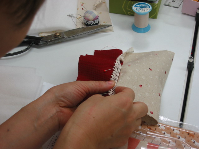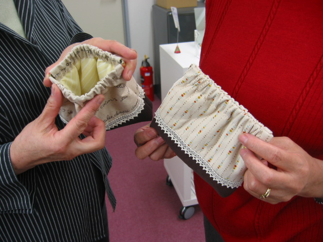 先生が丁寧な指導、ありがとうございます。。 | こんなに素敵なポーチが出来ました。 |