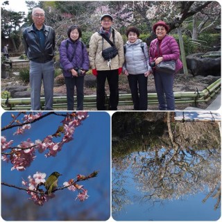 青空の下で梅の花や濃いピンクの河津桜を撮りました。