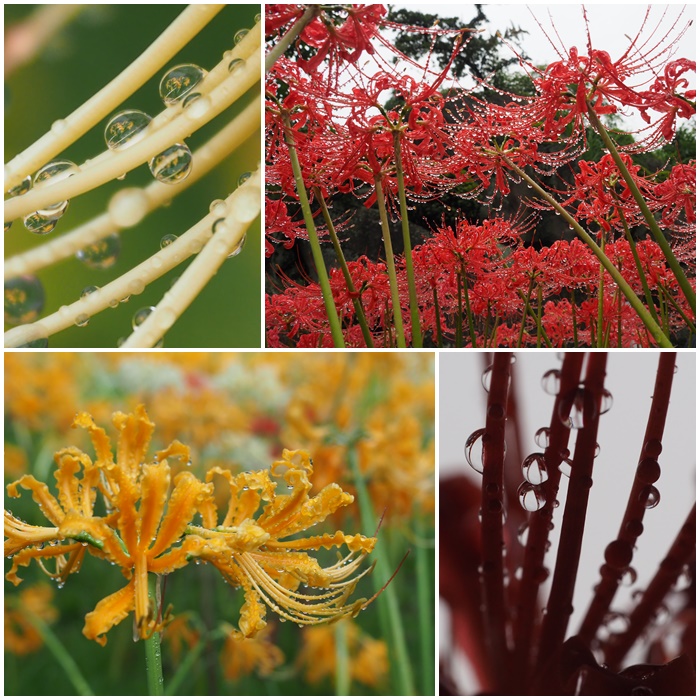彼岸花はほぼ終わっていて、広めには撮れませんでしたが天気が雨の中、お寺に着くと雨が上がり、輝く真珠のような雫を沢山残してくれました。