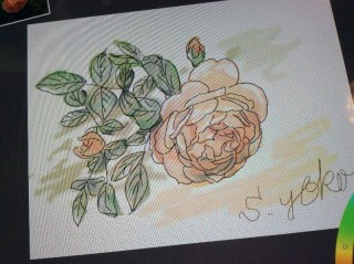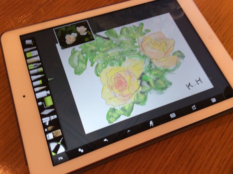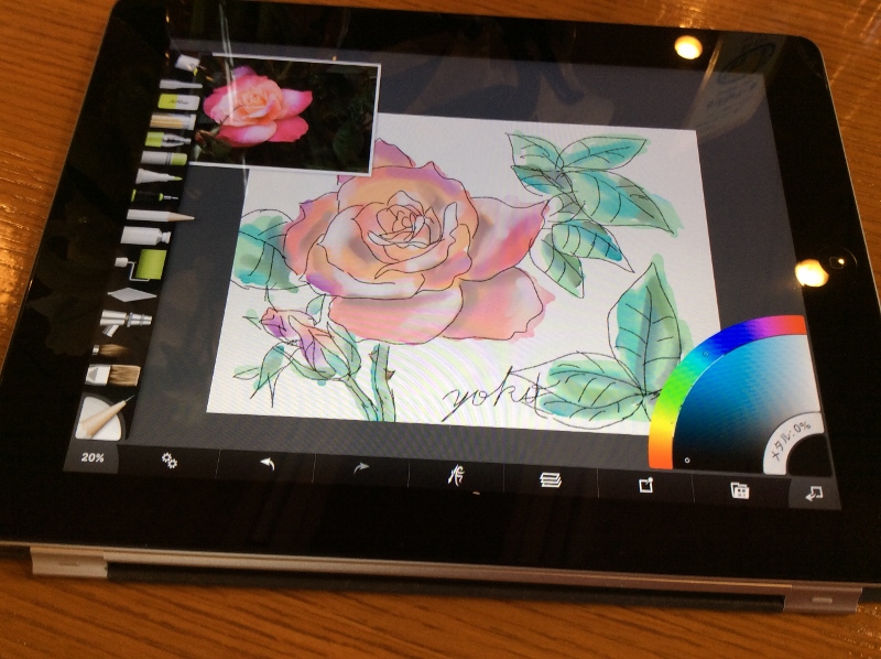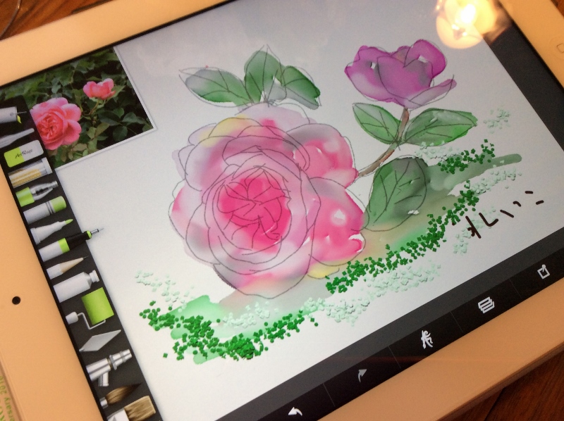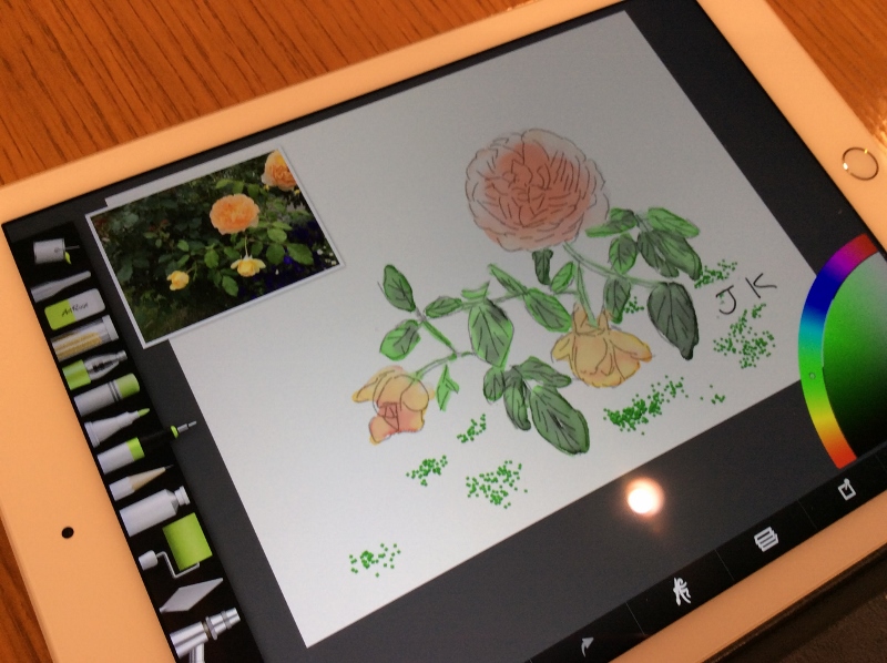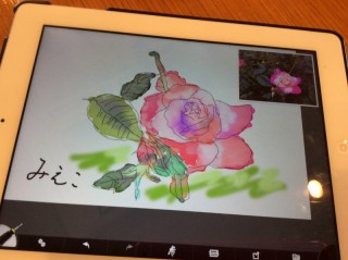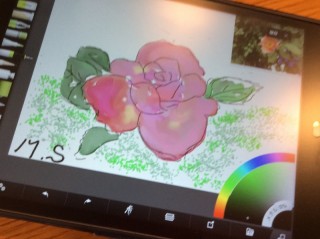 丁度7名が座れるベンチでArtRageの使い方をレクチャーし写真の取り込み後撮った薔薇を