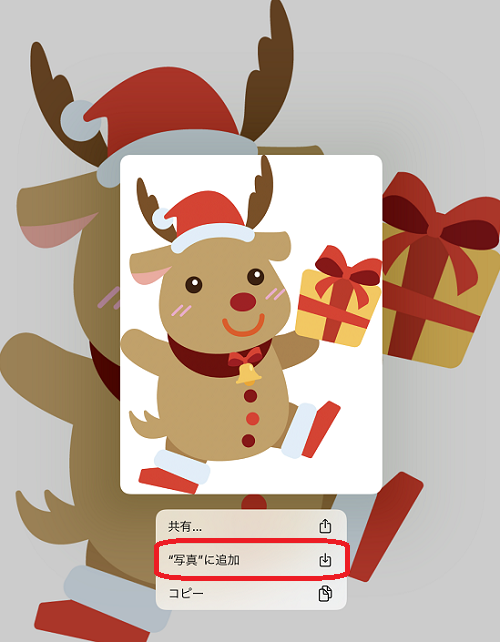 iPadやスマホの場合は、画像を長押しして【画像を追加】をタップします。