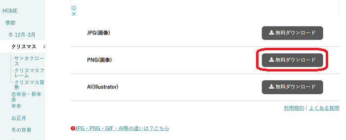 【PNG(画像)】の右にあるダウンロードをクリックします。
