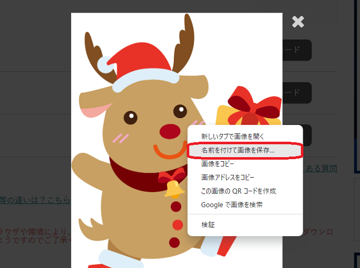 画像の上で右クリックし、【名前を付けて画像を保存】をクリックします。