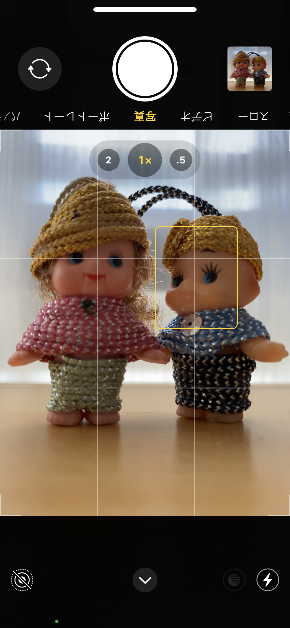 スマホ(ここではiPhone)を逆さにしてシャッターを押します。