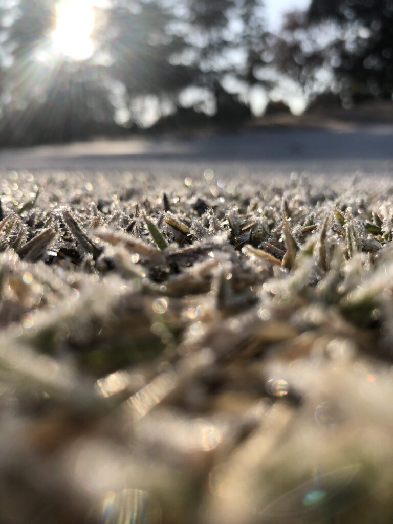 霜を地面ギリギリから撮ってみました。