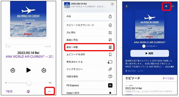 ① 【…】をタップし、詳細メニューから【番組へ移動】をタップします。