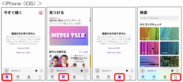 ポッドキャストを起動したら、下にあるメニューを確認しましょう。