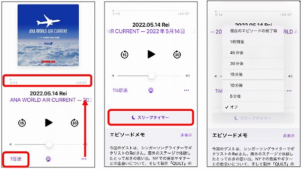早送りやタイマーなど、再生の機能を覚えましょう。