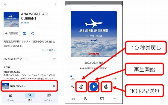 ポッドキャストは録音されたものを聴くため、一時停止や早送り、巻き戻しなどができます。散歩や家事、運転などしながら、イヤホンやヘッドホンで気軽に楽しみましょう。