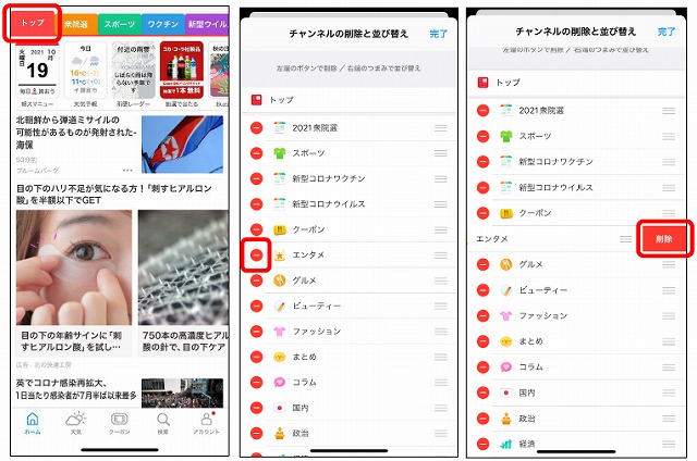 3. 赤いマイナスのところをタップして、【削除】をタップします。